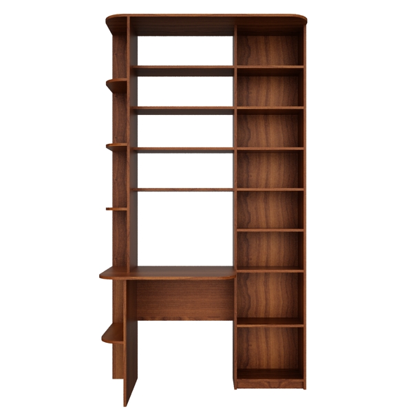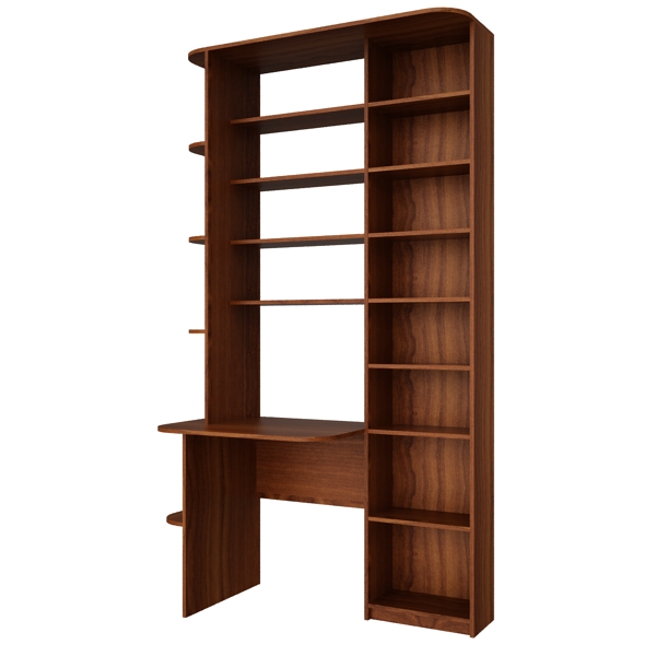 Компьютерный стол с множеством удобных полок. На нем можно разместить множество нужных вещей.