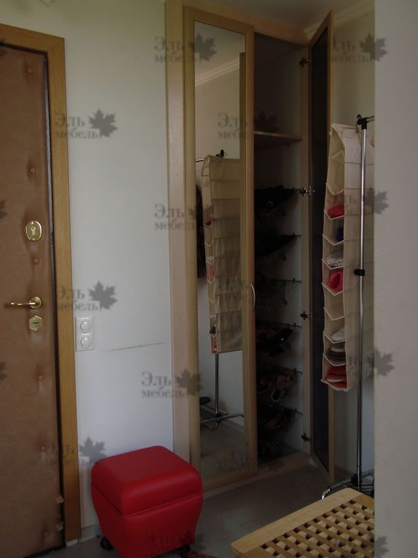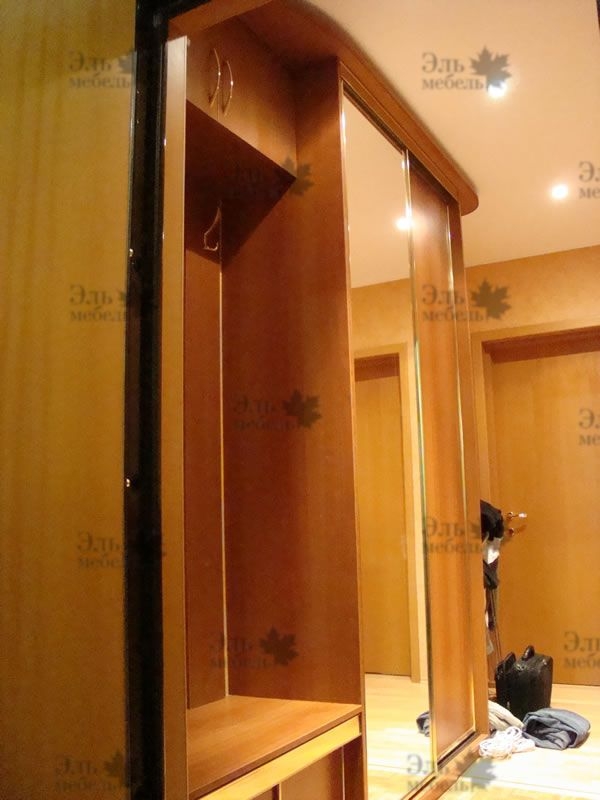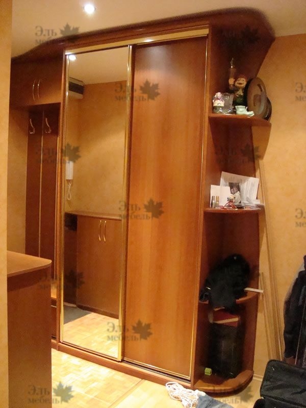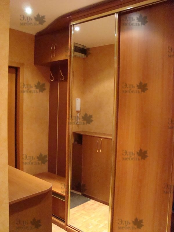 Треугольный шкаф в треугольной нише.Выполнен из ЛДСП Egger H1348(дуб кремона шампань),двери-распашные из МДФ профиля(АГТ)с наполнением зеркало-серебро.Наполнение шкафа:антресольная полка,сотовые полки для обуви.</p>