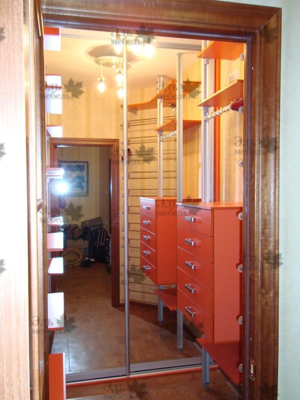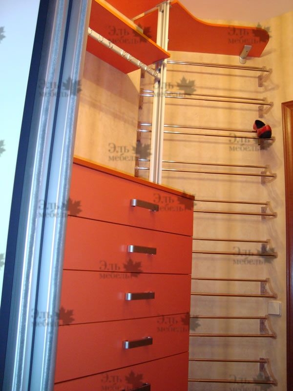 Обустройство гардеробной комнаты(темная комната)Изготовление из ЛДСП Egger (U326 ST15) Тыквенно-жёлтый,Шкаф-купе+подвесная тумба+стеллажи+обувные<br />