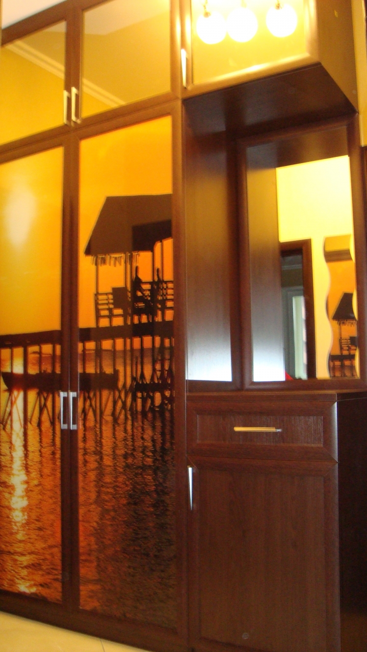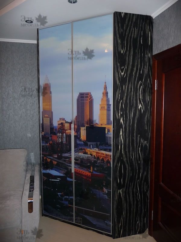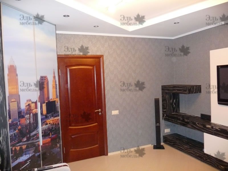Шкаф купе с фотопечатью в гостиной.</p>