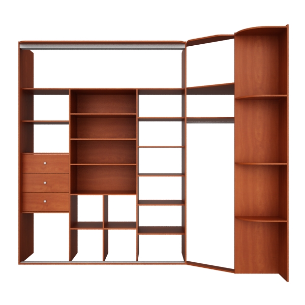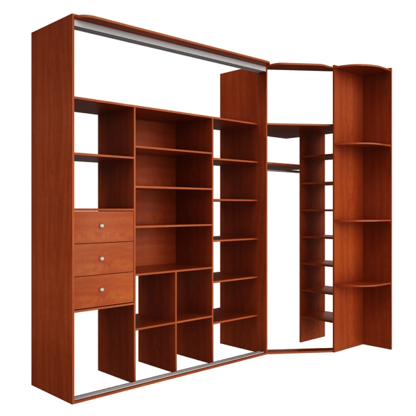 Встроенный угловой шкаф-купе Эль-ШК56 представляет собой встраиваемый шкаф с раздвижными дверьми, имеющий боковую стенку с одной стороны и радиусные полки с другой. Шкаф-купе предназначен для размещения между двумя смежными стенами помещения (стены помещения служат боковыми стенками шкафа), для экономии и визуального расширения пространства. Шкаф оснащен двумя раздельными антресолями. Сплошная антресоль за счет особого крепежа и размещения опор позволяет выдерживать нагрузку более 50 кг. Шкаф-купе оснащен тремя выдвижными ящиками 100% выдвижения. Дно ящика выполнено из оргалита,а крепление дна ящика скобами 15х10мм позволяет выдерживать нагрузку до 10 кг. Полки в шкафу-купе крепятся при помощи эксцентриковых стяжек, что позволят им выдерживать нагрузку до 5 кг. Вешало, изготовленное из стальной хромированной трубы диаметром 25 мм, крепиться к боковым стенам при помощи стального фланца, что позволяет выдерживать нагрузку до 50 кг. Двери шкафа-купе выполнены с помощью раздвижной системы Раумплюс (Raumplus) с наполнением ДСП Еггер Евродекор (EGGER EURODEKOR® E1) цвета "Швейцарская груша". Контур шкафа завершают боковые радиусные полки. Шкаф-купе выполнен с применением присадки на эксцентриковых стяжках, что создает привлекательный внешний вид и вносит особый уют в Ваш дом.